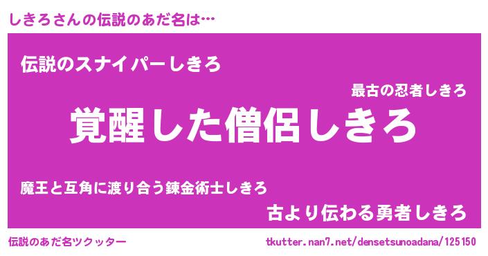 | ヒーロー風カッコイイあだ名 | 『幻影騎士シキ』『仮面シキダー』 |
