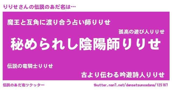 | ヒーロー風カッコイイあだ名 | 『ウルトラりりせマン』『ネオリリセ』 |