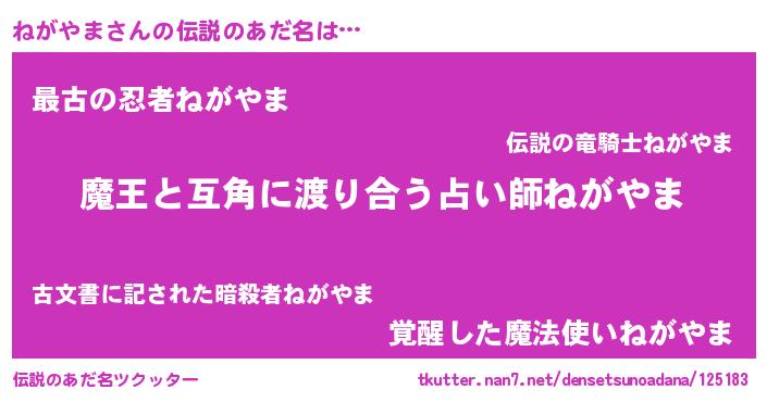 | 男性向けラノベタイトル風あだ名 | 『転生したらねがやまだった件』 |
