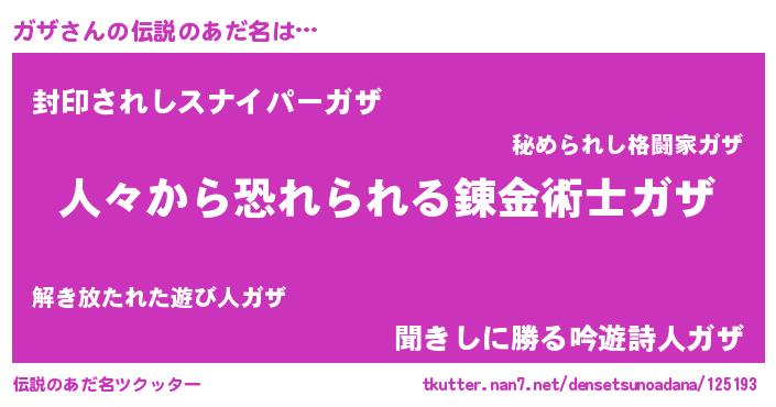 | 男性向けラノベタイトル風あだ名 | 『魔法科高校のガザ』『ガザスレイヤー』 |