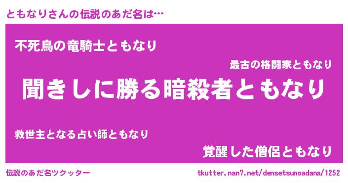 | 胡散臭い通販商品みたいなあだ名 | 『絶対に幸福をもたらす健康食品…その名も「ともなり」』 |