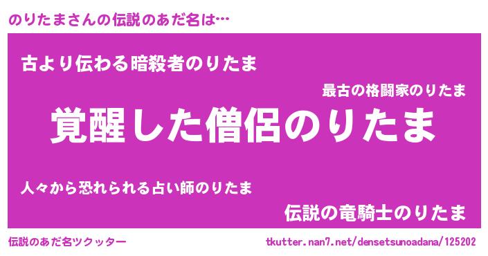 | 意味不明あだ名 | 『自称のりたま』『永久保存のりたま』 |