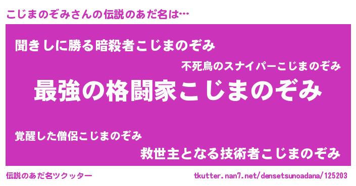 | 男性向けラノベタイトル風あだ名 | 『この素晴らしい世界にこじまのぞみを!』 |