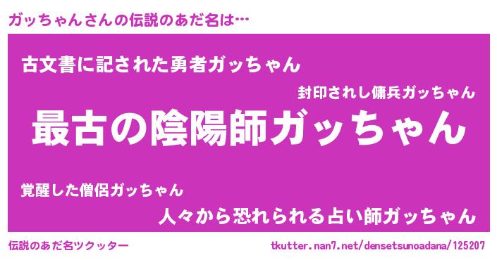 | ファンタジー風あだ名 | 『エターナルガッチャンー』『ゼガットゥ』 |