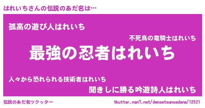 | 意味不明あだ名 | 『はれいちフォーエバー』『自称はれいち』 |