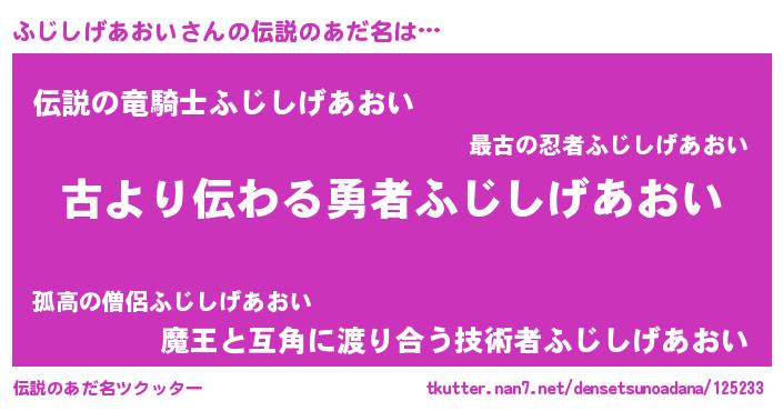 | 意味不明あだ名 | 『永久保存ふじしげあおい』 |