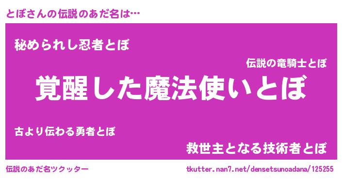 | ファンタジー風あだ名 | 『ファントムトボス』『エターナルトボー』 |