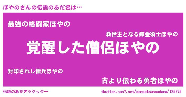 | 意味不明あだ名 | 『とにかく怪しいほやの』『自称ほやの』 |