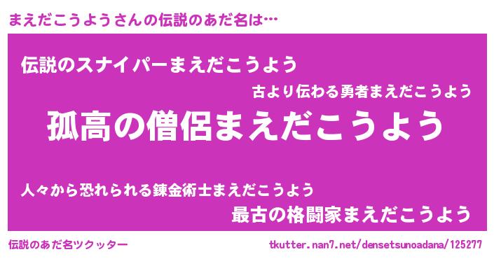 | ヒーロー風カッコイイあだ名 | 『暗黒騎士マエ』『仮面マエダー』 |