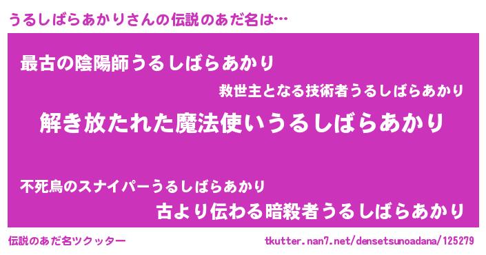 | 女子向けラノベタイトル風あだ名 | 『うるしばらあかりの卵を拾いまして』 |