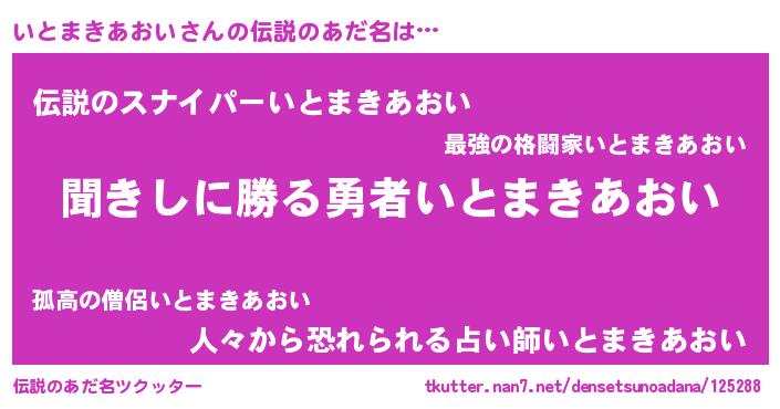 | 意味不明あだ名 | 『永久保存いとまきあおい』 |