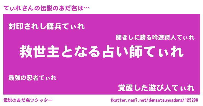 | ヒーロー風カッコイイあだ名 | 『最強戦士ティレ』『天空の使者てぃれ』 |