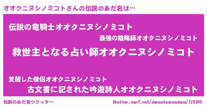 | ヒーロー風カッコイイあだ名 | 『天空の使者オオクニヌシノミコト』 |