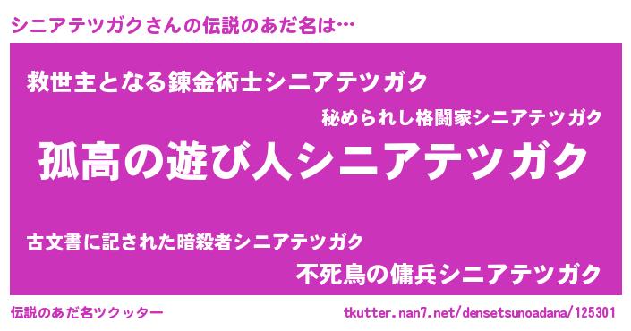 | 胡散臭い通販商品みたいなあだ名 | 『信頼と実績のペンダント…その名も「シニアテツガク」』 |