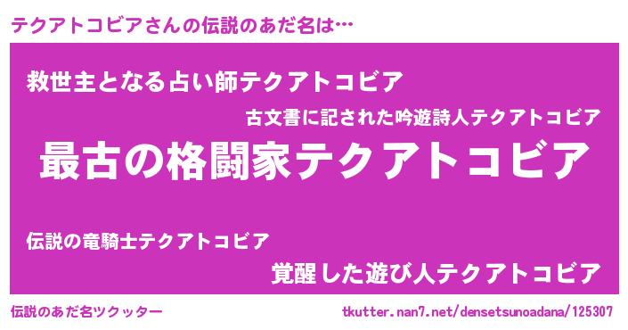 | ファンタジー風あだ名 | 『エターナルテクアトコビアー』 |