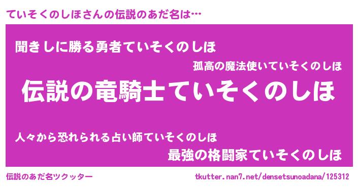| 料理風あだ名 | 『ていそくのしほごはん』 |