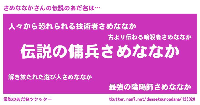 | 胡散臭い通販商品みたいなあだ名 | 『必ず成功する水晶球…その名も「さめななか」』 |
