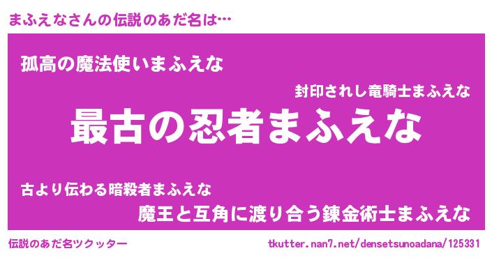 | 意味不明あだ名 | 『まふえなフォーエバー』『自称まふえな』 |