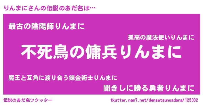 | 意味不明あだ名 | 『ペロリンりんまに』『自称りんまに』 |
