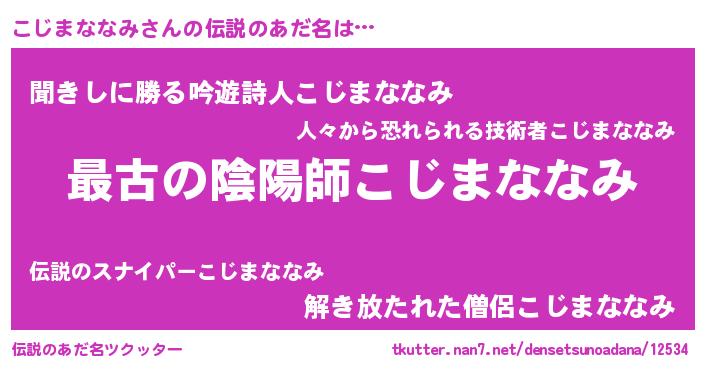 | 意味不明あだ名 | 『住所不定無職こじまななみ(95歳)』 |