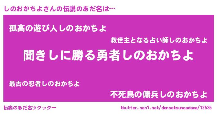 | 男性向けラノベタイトル風あだ名 | 『しのおかちよという概念が存在しない退屈な世界 』 |