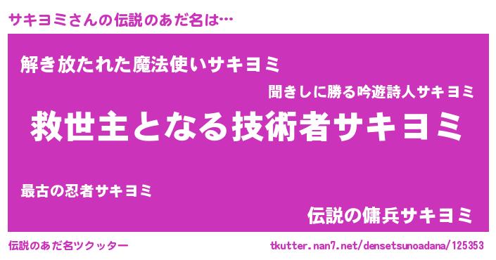 | ヒーロー風カッコイイあだ名 | 『仮面サキダー』『友情の使者サキヨミ』 |