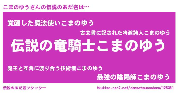 | ヒーロー風カッコイイあだ名 | 『スーパーコマノユウ』『暗黒騎士コマ』 |
