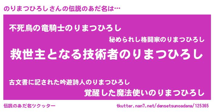 | 男性向けラノベタイトル風あだ名 | 『ノーゲーム・ノーノリマツヒロシ』 |