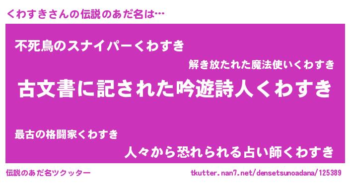 | ヘコむあだ名 | 『くわすき(笑)』『くわっふぃ~』 |
