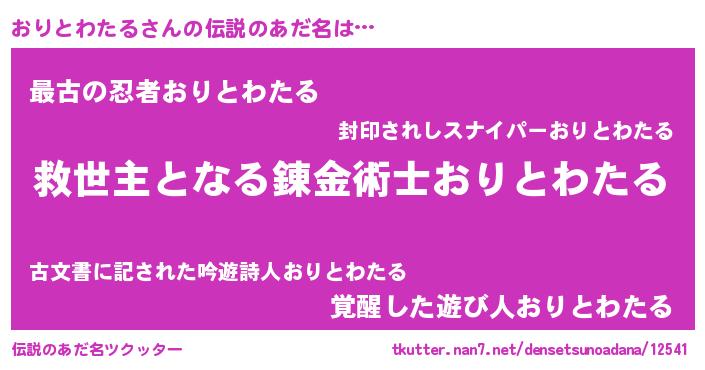 | 男性向けラノベタイトル風あだ名 | 『おりとわたるに滅ぼされるだけの簡単なお仕事です』 |