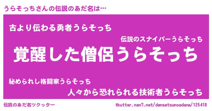 | ヒーロー風カッコイイあだ名 | 『炎刃騎士ウラ』『ネオウラソッチ』 |