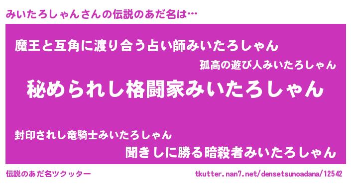 | 男性向けラノベタイトル風あだ名 | 『やはりみいたろしゃんの青春ラブコメはまちがっている 』 |