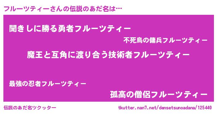 | 男性向けラノベタイトル風あだ名 | 『ノーゲーム・ノーフルーツティー』 |