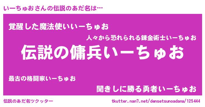 | 意味不明あだ名 | 『ペロリンいーちゅお』『自称いーちゅお』 |
