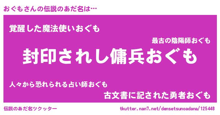 | 男性向けラノベタイトル風あだ名 | 『この素晴らしい世界におぐもを!』 |