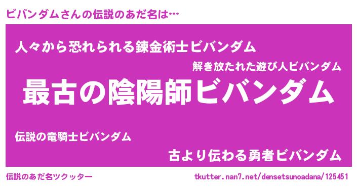 | 意味不明あだ名 | 『住所不定無職ビバンダム(77歳)』 |