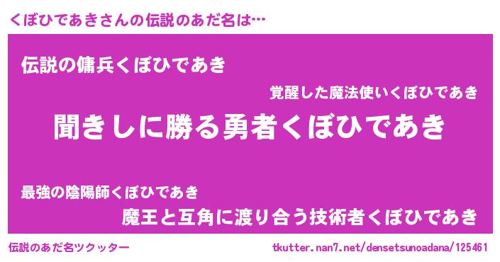 | 意味不明あだ名 | 『永久保存くぼひであき』 |