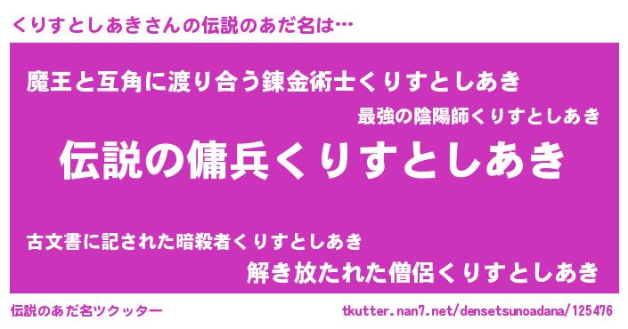| 意味不明あだ名 | 『自称くりすとしあき』 |