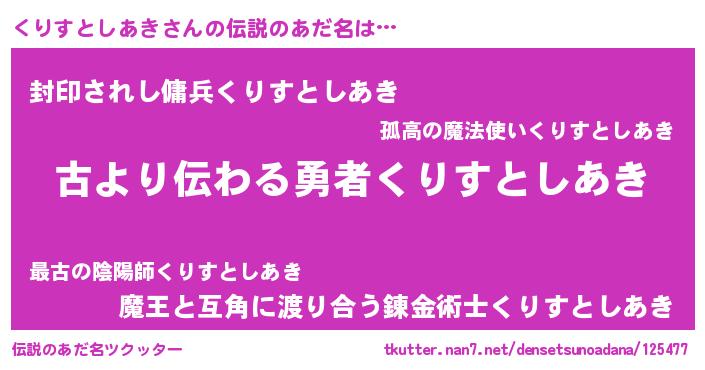 | 料理風あだ名 | 『くりすとしあきごはん』 |