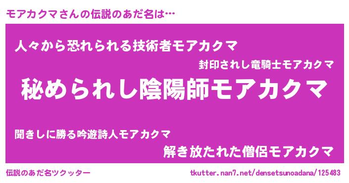 | 男性向けラノベタイトル風あだ名 | 『モアカクマスレイヤー』 |