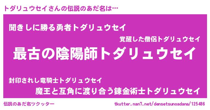 | 意味不明あだ名 | 『住所不定無職トダリュウセイ(74歳)』 |
