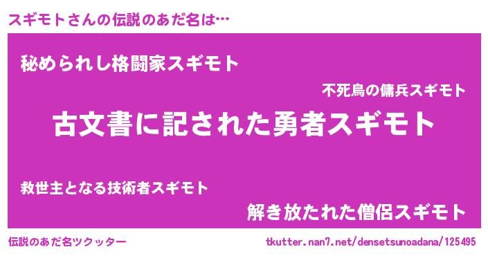 | 意味不明あだ名 | 『永久保存スギモト』『自称スギモト』 |