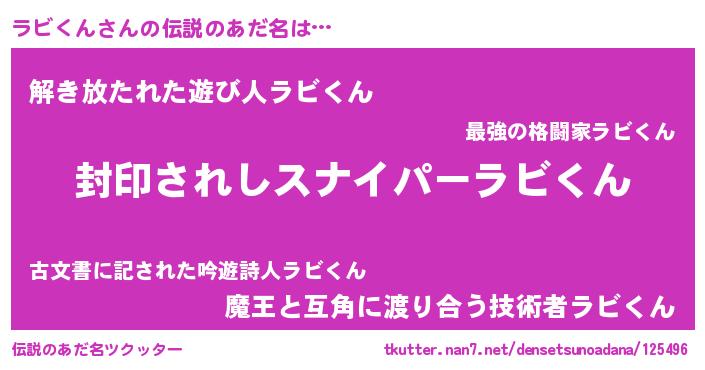 | ヒーロー風カッコイイあだ名 | 『最強戦士ラビクン』『スーパーラビクン』 |