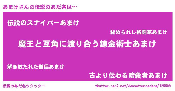 | ヒーロー風カッコイイあだ名 | 『ウルトラ戦士アマケ』『仮面アマダー』 |