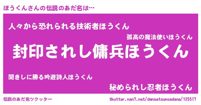 | 男性向けラノベタイトル風あだ名 | 『Re:ほうくんから始める異世界生活』 |