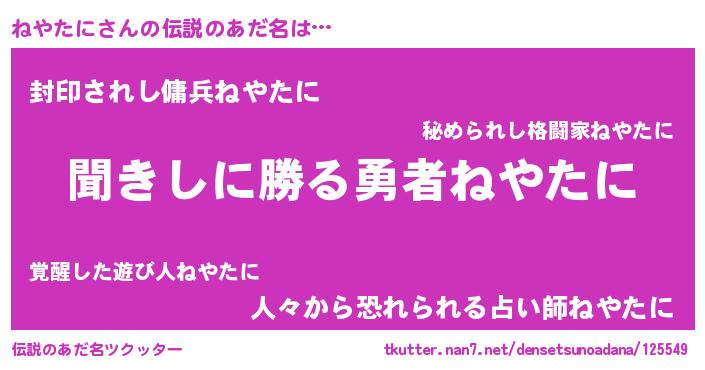 | 意味不明あだ名 | 『自称ねやたに』『永久保存ねやたに』 |