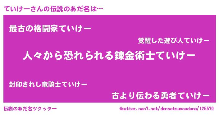 ポケモン風あだ名 | 『テックウザ』『テイケダネ』 |
