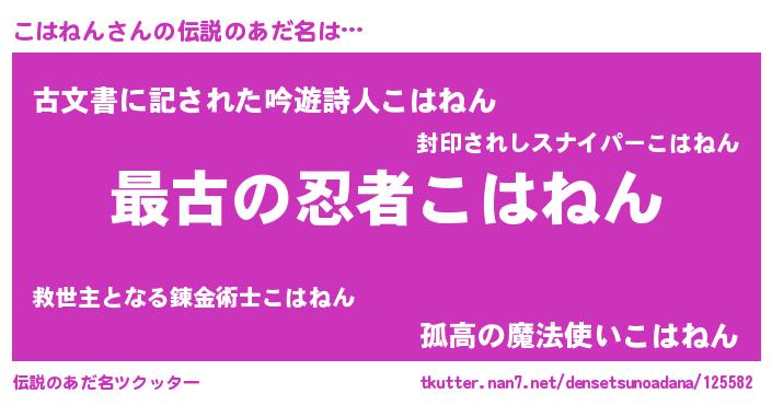 | ファンタジー風あだ名 | 『エターナルコハネンー』『ゼコハトゥ』 |