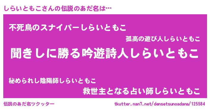| 意味不明あだ名 | 『永久保存しらいともこ』 |