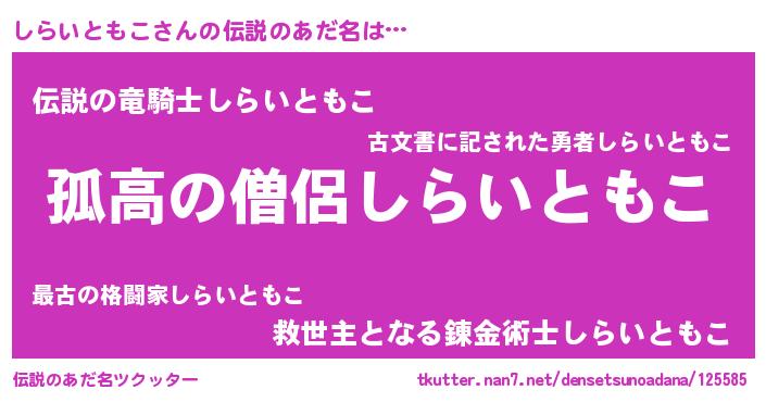 | 男性向けラノベタイトル風あだ名 | 『魔法科高校のしらいともこ』 |